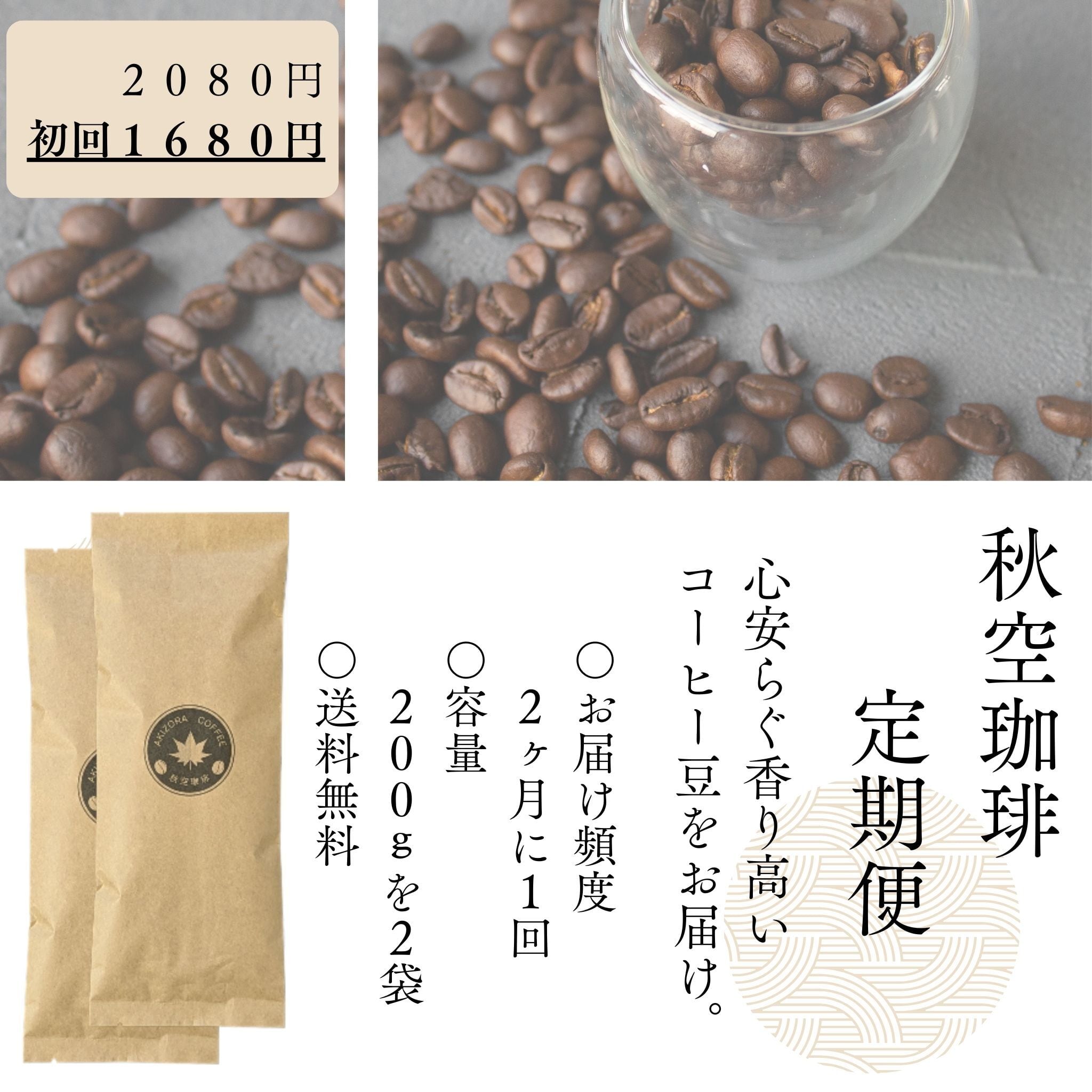 2ヶ月に1度、焙煎仕立て・煎りたての香り高いコーヒー豆を、自身を持ってお届けします。